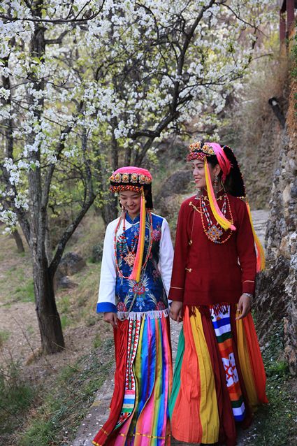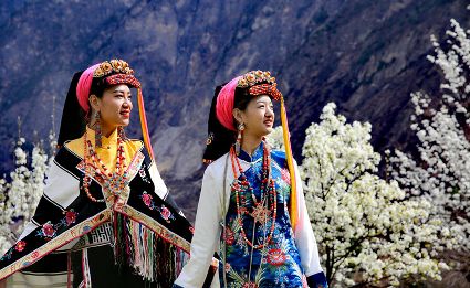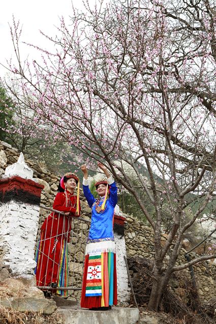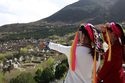 高大挺拔的梨樹(shù)如星星般散落在獨(dú)具特色的嘉絨藏族民居和古老碉樓附近。眼前看到的是雪白的梨花,身邊走過(guò)的是笑容比梨花還甜的藏族姑娘,交融成一道絕美的風(fēng)景線。