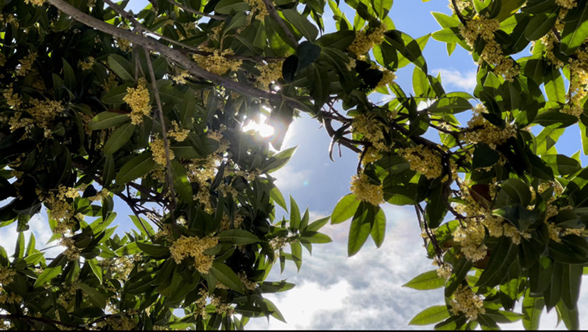 九月的鵬城巴塘,大街小巷叢桂怒放,點(diǎn)點(diǎn)桂花密密匝匝地簇生于葉腋或攢聚于枝頭,清香彌散。清涼的秋風(fēng)攜著醉人的花香,似乎就在不經(jīng)意間入了芳心,醉了滿城,迷了萬千。
