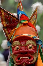 具有一千多年歷史的藏戲因所戴的面具不同分白面具和藍(lán)面具兩派,在《諾?!?、《卓娃桑姆》、《朗莎姑娘》等八大藏戲劇目中,因人物角色不同有30多種多姿多彩的面具。(圖片來(lái)源:友多圖庫(kù))
