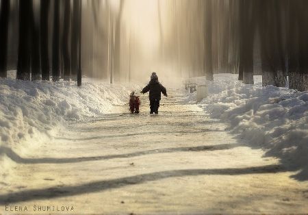 兩個毫不知情的小男孩兒無疑為這種電影畫面般精美的風景上添上了最美的一筆。無論是在一條泥濘的小路,還是陰冷的森林,或是在室內(nèi)。Elena捕捉到了那束最完美的光線,正巧照射在小男孩兒的身上,如陰雨天突 然出現(xiàn)的太陽,一切都變得不再陰郁而充滿陽光。Elena說,“我比較喜歡自然光,無論是在室內(nèi)還是室外,我喜歡各種各樣的光線環(huán)境,街燈,蠟燭,煙霧, 雨天,雪天,任何一種都能給予畫面更深度的視覺沖擊與意義。
