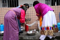 3月4日是藏歷木馬年正月初三,成都女子監(jiān)獄的藏族服刑人員穿戴起節(jié)日的盛裝,和走入高墻的西南民院師生們共度藏歷新年。篝火熊熊,歡樂的鍋莊,服刑人員、民警、師生們一同舞蹈,一同歡笑。