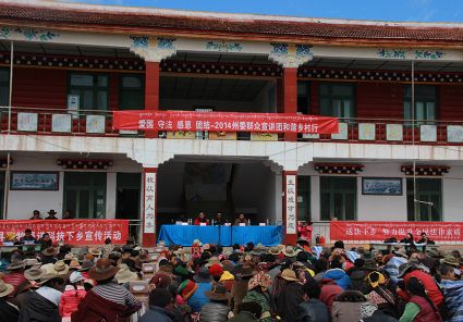 在此次宣講活動中,我州建立了州、縣、鄉(xiāng)、村“四級”宣講網(wǎng)絡,將群眾宣傳教育與群眾工作全覆蓋、法治甘孜、創(chuàng)建全國民族團結(jié)進步示范州等活動有機結(jié)合,突出主題宣講,注重特色宣講和典型宣講,創(chuàng)造性地啟用了“草根宣講員”以及面對面“1+N”宣講,派會當?shù)卣Z言的宣講老師進行宣講,形成了層次分明、重點突出的立體宣講體系,實現(xiàn)了從剛性宣教向柔性宣教、從說教向寓教、從蜻蜓點水向潛入內(nèi)心的“三個轉(zhuǎn)變”。