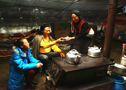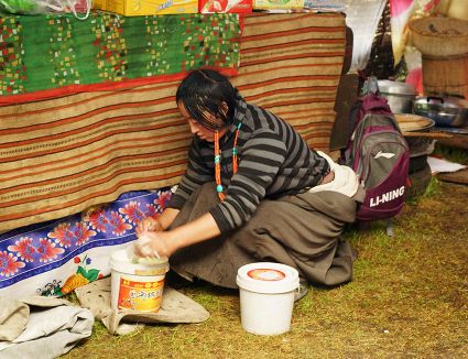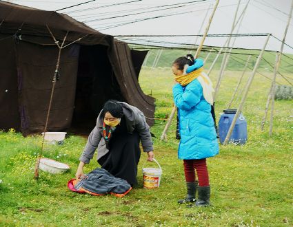 達(dá)珍和她的丈夫是我州爐霍縣宗塔草原上普通的牧民,育有一對(duì)兒女,都在縣上讀書(shū),小兒子上小學(xué),大女兒讀初中,放暑假,11歲的女兒回到了牧場(chǎng),幫助阿爸、阿媽放牧。女兒的到來(lái),讓達(dá)珍家每一天都充滿(mǎn)了歡笑,7月中旬的一天,筆者來(lái)到了這里,用像機(jī)記錄了達(dá)珍的一個(gè)早晨,那是一個(gè)朝霞滿(mǎn)天的開(kāi)始?!?郭昌平 攝影報(bào)道