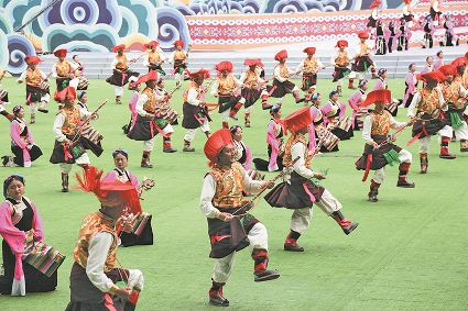 8月8日上午,康定北門體育場內(nèi)歌舞升平、彩旗飄揚,第九屆康巴藝術(shù)節(jié)開幕式文藝演出在此進行最后一次帶妝彩排。本次彩排也讓我們對開幕式文藝演出充滿了期待。