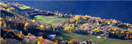 丹巴的秋似乎來(lái)得更晚一些,當(dāng)羌塘高原上的雪花從彤云密布的天空中飄灑下來(lái),雅礱江上游滴水已成冰的時(shí)候,那秋才帶著陣陣涼意,伴隨著飄飄蕩蕩的白云,跨過(guò)雪域高原,翻過(guò)崇山峻嶺,載著五顏六色的夢(mèng)想,悄悄的眷顧上這塊還郁郁蔥蔥的峽谷。就這樣,秋在不經(jīng)意間劃過(guò)峽谷兩岸,用自己特有的方式,渲染了所有的景色,漸漸瘦弱了山的肌膚。