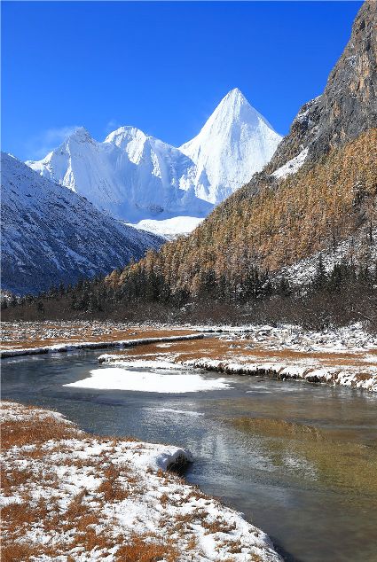 稻城亞丁給人的印象最深的應(yīng)該是一片片令人沉醉的秋景或那無處不在的青楊林,更多人不知道的是,其實(shí)稻城亞丁在冬季的美麗更為引人入勝。山巒與樹木銀裝素裹,瀑布與湖泊冰清玉潔,藍(lán)色湖面的冰層在日出日落的溫差中,變換著奇妙的花紋細(xì)細(xì)的水流發(fā)出沁人心脾的音樂。不管是冰天雪地還是人文風(fēng)情,或是原始風(fēng)光,冬季的稻城亞丁都能為您帶來最美好的視覺盛宴。