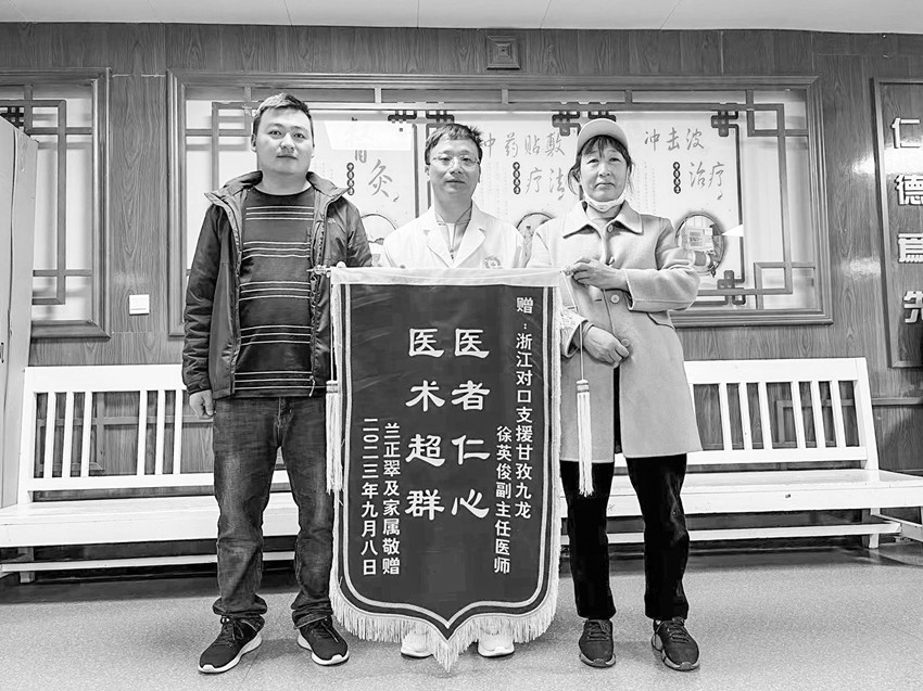 本網(wǎng)訊 “一面錦旗不足以代表我們?nèi)业母兄x,感謝您把我的頑疾解決了,現(xiàn)在生活恢復(fù)了正常!”近日,家住九龍縣魁多鎮(zhèn)的蘭大姐專程來(lái)到九龍縣人民醫(yī)院,將一面“醫(yī)者仁心 醫(yī)術(shù)超群”的錦旗送到杭州對(duì)口支援醫(yī)師徐英俊的手中。
