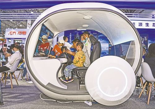 5月27日,孩子們在“數(shù)博會”上通過虛擬電動車體驗綠色出行。新華社記者 楊文斌 攝