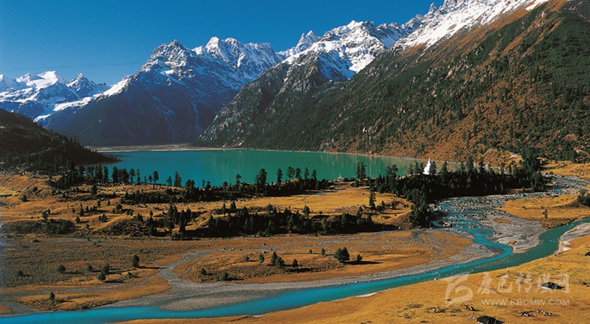 玉隆拉措又名新路海,海拔4040米,傍川藏公路。新路海為冰川湖泊,平均水深10米,面積6.2平方公里。湖泊三面依山,一面臨塬,凝靜時“秋水共長天一色”,象一碩大的明鏡映奇瑰山色于水中,又如靚藍的畫布上碧峰入幀;時有輕風(fēng)蕩來,湖中波光瀲滟,若仙女弄影。夏季湖水清澈見底,冬春時則靜謐得滲出翠綠來。正面處是一座雪影婆娑的奇峰,巋然不動;與雀兒山相呼應(yīng),兩峰之間冰清玉潔,整個溝壑處冰瀑縱橫錯落,呈跳躍狀直撲谷底而來。