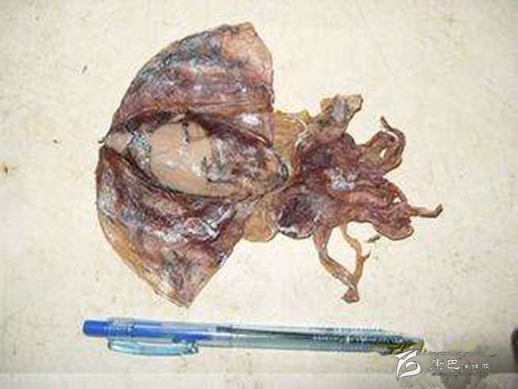 用手指用力按一下胴體的中部,如果有堅硬感,就是烏賊魚,如果較軟,就是魷魚。因為烏賊魚有一條像船型的硬烏賊骨,而魷魚僅有一條葉狀的透明薄膜橫亙于體內(nèi),所以手感不同。另外,魷魚一般都體形細長,末端呈長菱形,肉質(zhì)鰭分列于嗣體的兩側(cè),倒過來觀察時,很像一只“標槍頭”,而烏賊魚外形稍顯肩寬,與魷魚的其他特征也有區(qū)別。