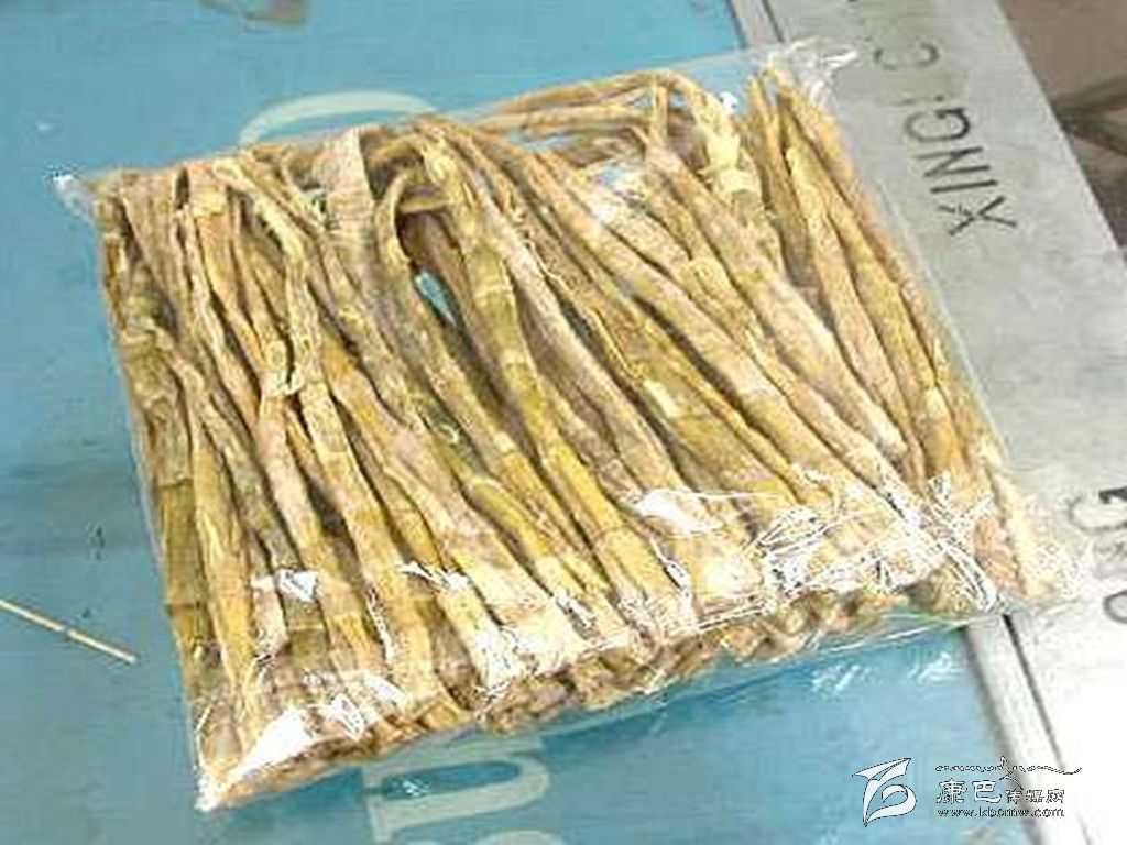 ●筍干:要求筍色淡黃或褐黃有光澤,質(zhì)嫩。有清新的竹香味。根薄、節(jié)密、紋細、筍片闊的筍質(zhì)嫩,折之即斷;筍片闊、肉質(zhì)厚、筍節(jié)密的脹性好。