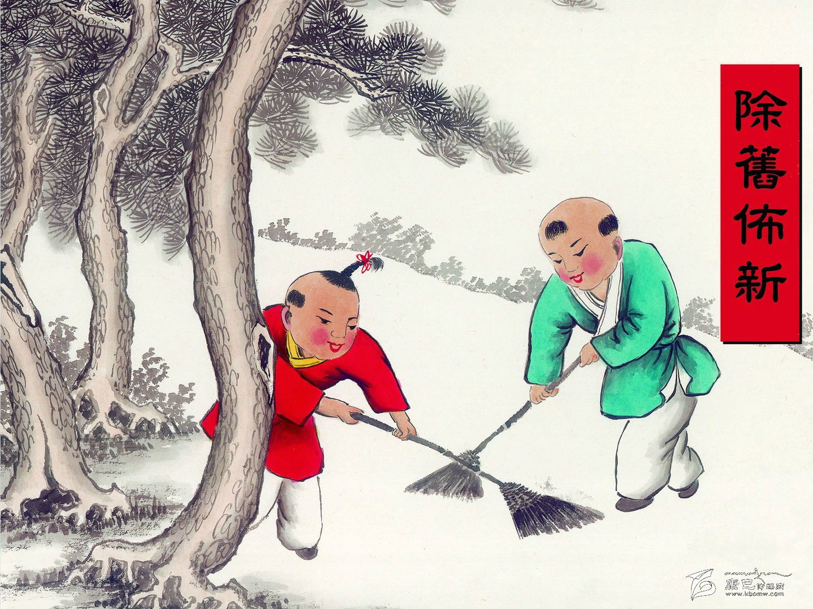 舉行過(guò)灶祭后,便正式地開(kāi)始做迎接過(guò)年的準(zhǔn)備。每年從農(nóng)歷臘月二十三日起到除夕止,我國(guó)民間把這段時(shí)間叫做“迎春日”,也叫“掃塵日”。掃塵就是年終大掃除,北方稱(chēng)“掃房”,南方叫“撣塵”。在春節(jié)前掃塵,是我國(guó)人民素有的傳統(tǒng)習(xí)慣。每逢春節(jié)來(lái)臨,家家戶戶都要打掃環(huán)境,清洗各種器具,拆洗被褥窗簾,灑掃六閭庭院,撣拂塵垢蛛網(wǎng),疏浚明渠暗溝。大江南北,到處洋溢著歡歡喜喜搞衛(wèi)生、干干凈凈迎新春的氣氛。