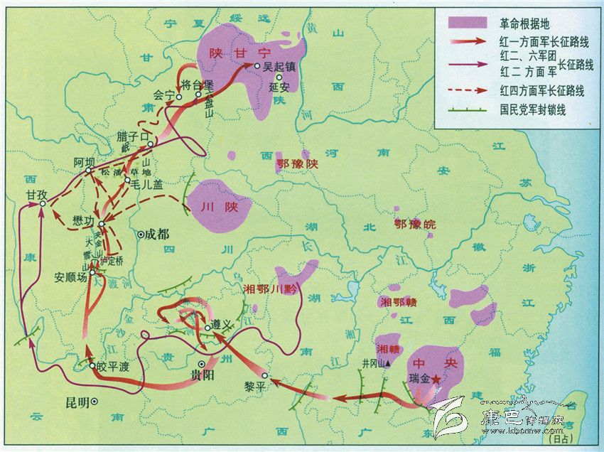 1934年10月,紅一方面軍從江西中央革命根據(jù)地出發(fā),1935年5月,紅一方面軍由雅安石棉沿大渡河進(jìn)入甘孜州地界,這之前,他們突破了難以計(jì)數(shù)的圍追堵截,皎平渡巧渡金沙江,安順場(chǎng)強(qiáng)渡大渡河,跳出了包圍圈,為抗日,5月29日,紅軍拿下天險(xiǎn)瀘定橋后,奇襲蘆山、寶興,翻越夾金山,進(jìn)入阿壩州地界。