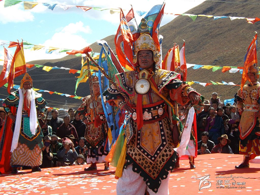 記得第一次邂逅藏戲大約是在1969年1月15日。一百多名來自全國各地的大專畢業(yè)生聚集在康定,幾天后被裝進4輛解放牌貨車車廂,在紛飛的大雪中開往理塘。在理塘兵站住了一宿又開往康呷草原,筆者將在那里的解放軍0074部隊當一名軍墾戰(zhàn)士,接受解放軍的再教育。當時氣溫已是零下20多度,穿著單薄的我們早已凍得腿腳麻木。經(jīng)過康呷區(qū)政府所在地,大家下車吃飯休息。雪早已停了,藍天白云,陽光燦爛。但見小學前面的大壩子圍了一圈帳篷,藏族老鄉(xiāng)圍坐在篝火旁,喝著酥油茶、青稞酒,興致盎然地觀看著各種表演。只見幾位戴著面具的演員在表演,旁邊一位40多歲的漢族小學老師告訴筆者那是藏戲,以往藏區(qū)逢年過節(jié)都要演藏戲,“文革”以后已經(jīng)禁演了,不知今天為何敢演唱,演的是藏民最崇拜的英雄格薩爾。從小愛好戲曲的我,被這場面所吸引,演出給筆者留下了深刻的印象。