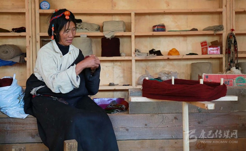 “庫(kù)”,這層細(xì)軟的底絨被表層粗糙的牦牛毛所覆蓋,且本身細(xì)長(zhǎng)彎曲,無(wú)法用剪刀方便地剪下,故而只能手工采集。從每年春天采集牦牛、羊絨,到捻成線,到染成不同顏色,再到織成一匹布,整個(gè)過(guò)程全由扎西巴姆和她帶領(lǐng)的幾個(gè)藏族婦女手工完成,全部學(xué)會(huì)這門(mén)技術(shù)需要3—4年,現(xiàn)在麥宿只有4人全部掌握。但與這費(fèi)力耗時(shí)的工藝形成殘酷對(duì)照的是,手工織物在機(jī)器快速生產(chǎn)的現(xiàn)代社會(huì),市場(chǎng)經(jīng)營(yíng)可謂舉步維艱。雖然工巧明系創(chuàng)立的平臺(tái)專(zhuān)門(mén)收購(gòu)編織班做出來(lái)的產(chǎn)品,但購(gòu)買(mǎi)的人并不多,編織班創(chuàng)建至今,所得收益只夠勉強(qiáng)維持平衡。