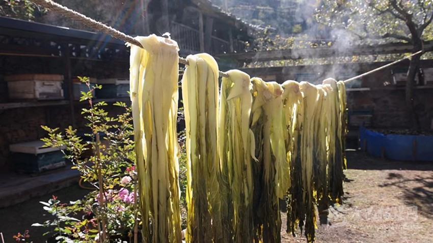 “自給自足”的家庭作坊式生產(chǎn),讓鹽白菜顯得尤為珍貴,這種風味獨特的食品已經(jīng)成為化林坪村的“孤品”,掌握古法腌制晾曬技術(shù)的人更是寥寥無幾。