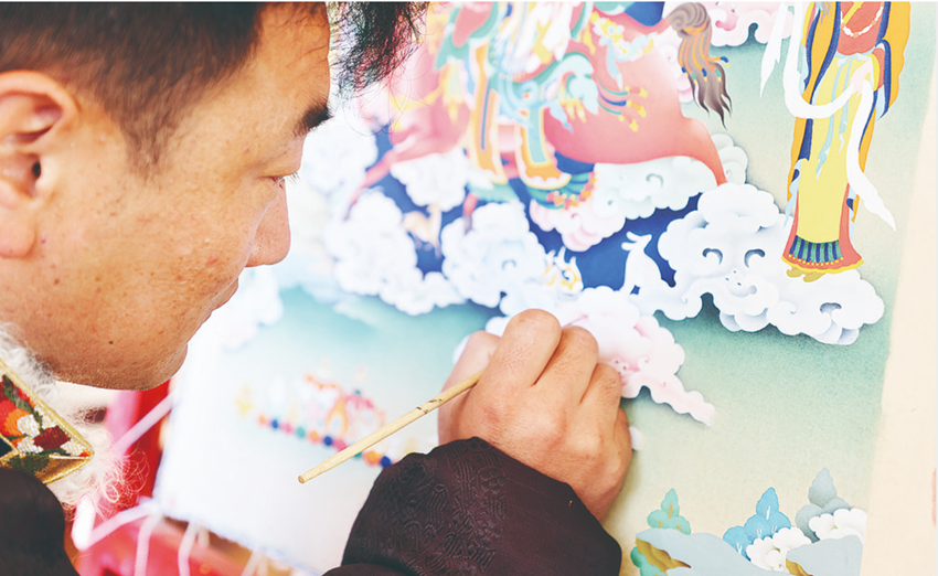 白玉縣河坡鎮(zhèn)的門(mén)薩唐卡畫(huà)派,以其獨(dú)樹(shù)一幟的畫(huà)法、瀟灑傳神的畫(huà)風(fēng)成為了唐卡繪畫(huà)藝術(shù)寶庫(kù)中難得的瑰寶。