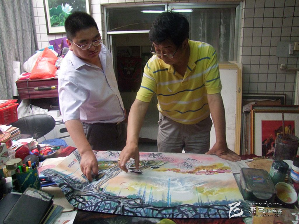 得知記者在《成都日報》學(xué)習(xí),文光裕先生便盛情相邀記者去他家里做客。7月9日,記者到雙流采訪了文光裕先生。文光裕先生詼諧幽默,學(xué)說逗唱、琴棋書畫樣樣都懂。他具有平和的心態(tài),所以看起來特別年輕,記者見到他的時候,很難把古稀老人與他聯(lián)系起來。人未見,笑聲先到,文光裕先生爽朗的笑聲感染了記者。他正在創(chuàng)作新舊康定對比繪畫作品。雄奇險峻的郭達(dá)山下,湍急的河水,密密麻麻的民房,這就是他記憶中上個世紀(jì)50年代的康定,雖然長期居住在內(nèi)地,但文光裕先生思鄉(xiāng)心切,用繪畫的形式來寄托對家鄉(xiāng)的思念。