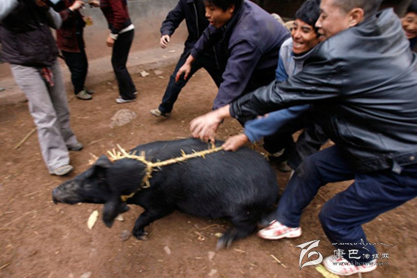 割豬蹄給娃娃們拿到山上玩。大人陪他們?nèi)计痼艋穑笓]他們將豬蹄不分你我地拋進(jìn)火中燒熟后,你一塊,我一坨地掏來(lái)吃,以養(yǎng)成團(tuán)結(jié)友愛(ài)的道德風(fēng)尚。