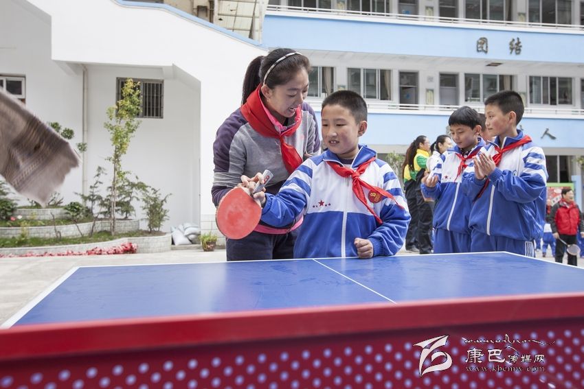11日下午,考察團(tuán)來到康定縣東大街小學(xué),師生們和牛劍鋒、汪鑫這兩位世界冠軍切磋起了球技。當(dāng)體操冠軍呂詩蒙帶領(lǐng)孩子們跳起韻律十足的健身街舞時(shí),全校600多名學(xué)生用笑容和吶喊將校園點(diǎn)燃。牛劍鋒委員認(rèn)為,培養(yǎng)優(yōu)秀的體育后備人才,不僅需要專業(yè)青少年選手的努力,也需要夯實(shí)青少年體育的群眾基礎(chǔ)。