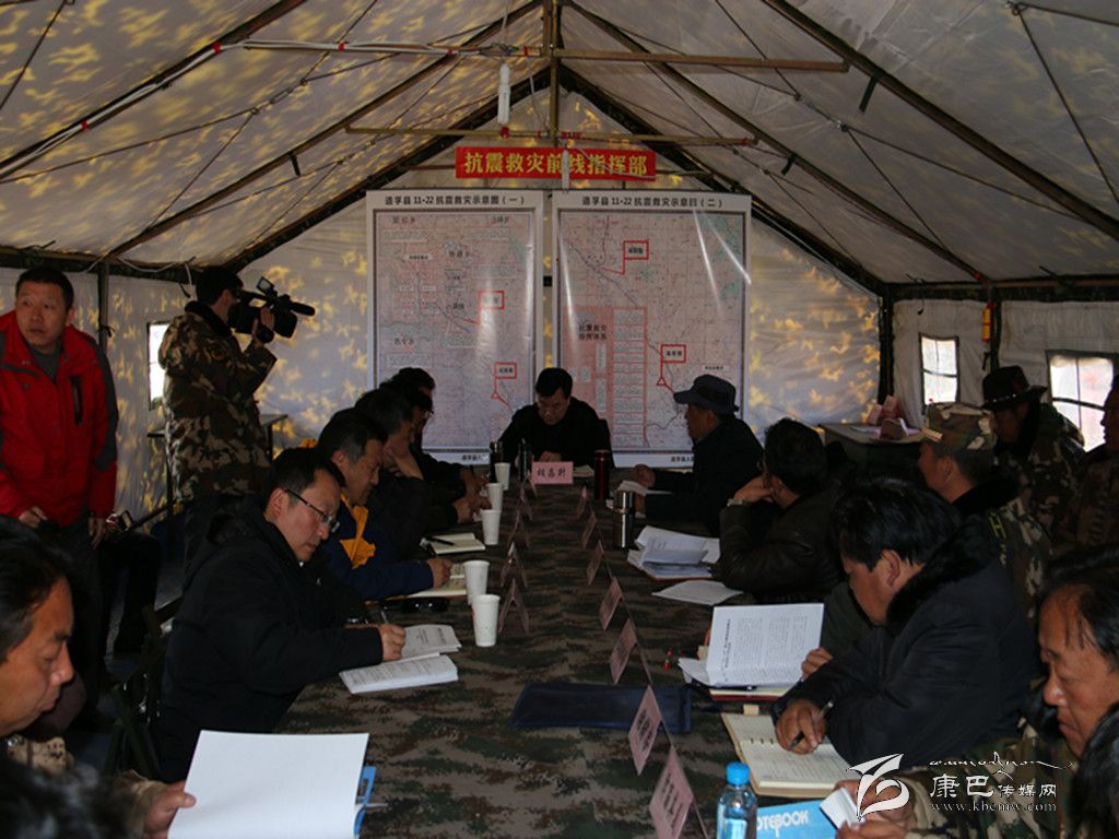 在前線指揮部,胡昌升主持召開前指工作專題會(huì)議,傳達(dá)了省委書記王東明和省長魏宏到我州地震災(zāi)區(qū)調(diào)研指示精神,聽取前線指揮部辦公室和營地各單位、康定縣、道孚縣關(guān)于抗震救災(zāi)工作的匯報(bào)。