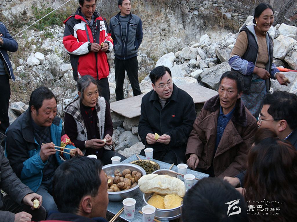 胡昌升欣然應(yīng)允。“這酸菜很好吃”,胡昌升一邊夾菜一邊說道。“這是用元根葉做的,沒有一點污染,”何銀輝高興地說。“這玉米饃饃也很好吃,很香”,胡昌升接著說。“這里邊加了一些酥油”,何銀輝回答……