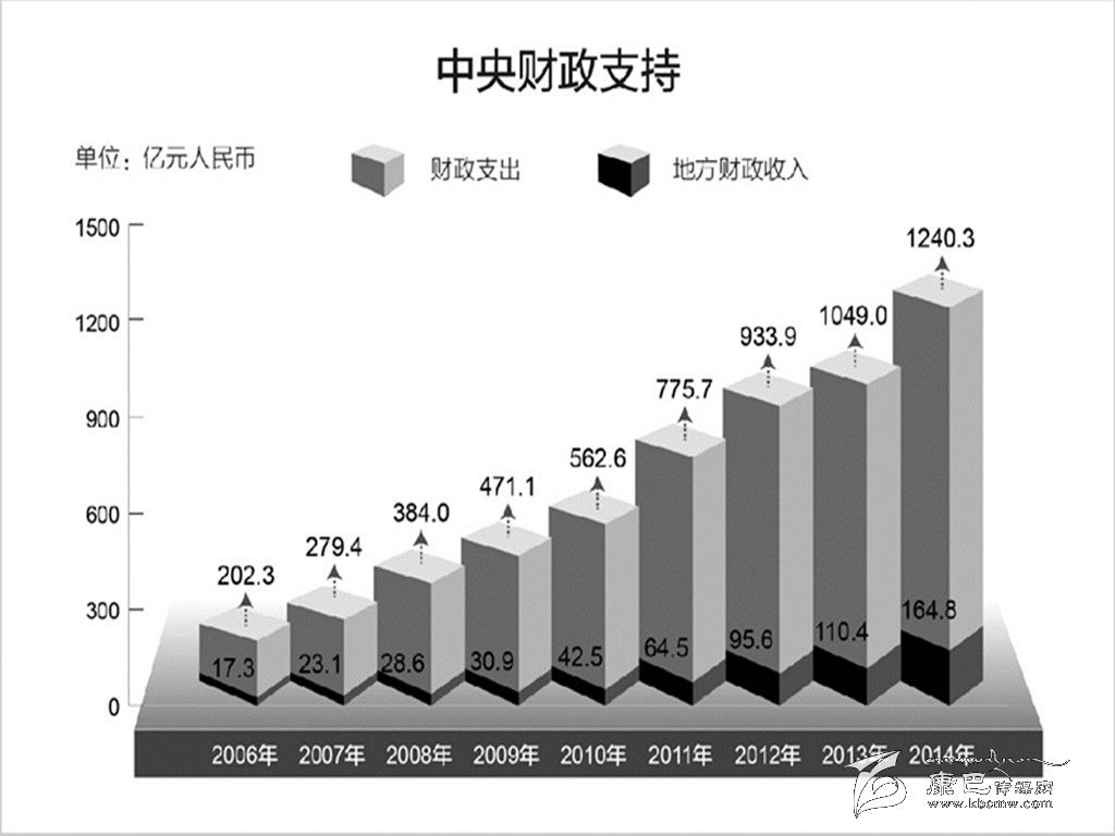 中央政府歷來(lái)高度重視西藏的發(fā)展,十分關(guān)心西藏各族人民的福祉,舉全國(guó)之力支援西藏,以優(yōu)惠的政策和強(qiáng)大的人力、物力、財(cái)力支持,推動(dòng)西藏的發(fā)展進(jìn)步。從1952年到2014年,中央政府對(duì)西藏的各項(xiàng)財(cái)政補(bǔ)助達(dá)6480.8億元,占西藏地方公共財(cái)政支出的92.8%。1980年以來(lái),中央先后六次召開(kāi)西藏工作座談會(huì),從中國(guó)社會(huì)主義現(xiàn)代化建設(shè)全局出發(fā),對(duì)西藏的發(fā)展建設(shè)作出整體規(guī)劃。從1994年第三次西藏工作座談會(huì)開(kāi)始,中央實(shí)施對(duì)口支援西藏的政策,安排60個(gè)中央國(guó)家機(jī)關(guān)、18個(gè)省市和17家中央企業(yè)對(duì)口支援西藏。20年來(lái),先后有七批4496名優(yōu)秀干部、1466名專業(yè)技術(shù)人才進(jìn)藏工作,實(shí)施援藏項(xiàng)目7615個(gè),投入援藏資金260億元,主要用于改善民生和基礎(chǔ)設(shè)施建設(shè),為西藏經(jīng)濟(jì)社會(huì)發(fā)展作出了重要貢獻(xiàn)。