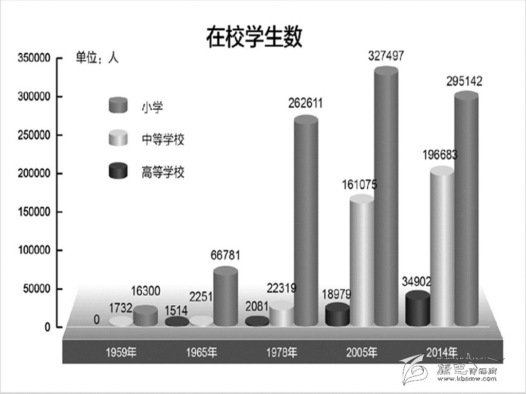 教育事業(yè)日新月異,實(shí)現(xiàn)學(xué)有所教。全區(qū)所有縣(區(qū))全面完成普及九年義務(wù)教育,一個(gè)涵蓋學(xué)前教育、基礎(chǔ)教育、職業(yè)教育、高等教育、成人教育、特殊教育的比較完整的現(xiàn)代教育體系已經(jīng)形成。實(shí)現(xiàn)了從學(xué)前到高中階段15年免費(fèi)教育,農(nóng)牧區(qū)義務(wù)教育學(xué)生營(yíng)養(yǎng)改善計(jì)劃全面落實(shí),政策和資金覆蓋率均達(dá)到100%。“三包”(包吃、包住、包學(xué)習(xí)費(fèi)用)政策覆蓋學(xué)前教育到高中階段所有農(nóng)牧民子女和城鎮(zhèn)困難家庭子女,且不斷提高標(biāo)準(zhǔn),年生均標(biāo)準(zhǔn)已提高到3000元。全面啟動(dòng)實(shí)施城鎮(zhèn)三年、農(nóng)牧區(qū)兩年學(xué)前雙語(yǔ)教育工程。2014年底,幼兒園在園幼兒達(dá)8萬(wàn)多人,學(xué)前教育毛入園率達(dá)60%。2014年底,全區(qū)擁有普通高等院校6所;中等職業(yè)學(xué)校9所,在校生1.7萬(wàn)人;高級(jí)中學(xué)22所,完全中學(xué)4所,初級(jí)中學(xué)93所,十二年和九年一貫制學(xué)校各3所,小學(xué)829所。小學(xué)適齡兒童入學(xué)率達(dá)到99.64%,青壯年文盲率下降至0.57%以內(nèi),人均受教育年限達(dá)到8.6年,新增勞動(dòng)力受教育年限達(dá)到12年以上。1984年,中央政府作出“在內(nèi)地為西藏辦學(xué)培養(yǎng)人才”的重大戰(zhàn)略決策,現(xiàn)有21個(gè)省市辦有西藏班(校),已累計(jì)為西藏培養(yǎng)了大中專畢業(yè)生3.2萬(wàn)余人。目前西藏不僅有了自己培養(yǎng)的碩士、博士,而且有了一批享譽(yù)全國(guó)的專家、學(xué)者,逐步建立了近30個(gè)科研院所,有各類專業(yè)技術(shù)人員69709人,學(xué)科領(lǐng)域涉及歷史、經(jīng)濟(jì)、人口、語(yǔ)言、宗教和農(nóng)業(yè)、畜牧、林業(yè)、生態(tài)、生物、藏醫(yī)藥、鹽湖、地?zé)?、太?yáng)能等數(shù)十個(gè)門類。其中,藏學(xué)、高原生態(tài)、藏醫(yī)藥等學(xué)科研究在全國(guó)處于領(lǐng)先水平,產(chǎn)生了一批有世界影響的學(xué)術(shù)成果。