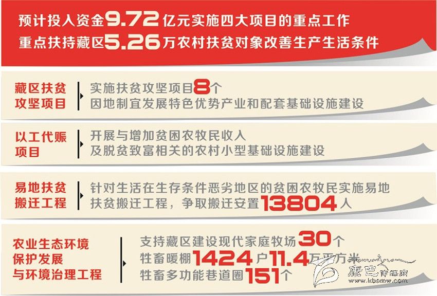 答:比如藏區(qū)扶貧攻堅項目,從實施內(nèi)容來看,今年在阿壩州、甘孜州、涼山州木里縣實施扶貧攻堅項目8個,其中阿壩州3個、甘孜州4個、涼山州木里縣1個,預(yù)計投入中央財政專項扶貧資金4000萬元,表面上延續(xù)了去年的工作,但今年實施項目將突出兩大要求,一是項目要瞄準(zhǔn)今年有計劃摘帽的貧困村、計劃脫貧的貧困戶,集中力量解決突出問題。二是項目資金要到村入戶,因地制宜發(fā)展特色優(yōu)勢產(chǎn)業(yè)和配套基礎(chǔ)設(shè)施建設(shè),確保精準(zhǔn)扶貧。