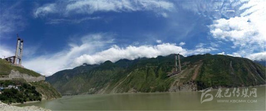 沿國(guó)道318線繼續(xù)往康定方向走,奔涌的大渡河鑲嵌在連綿起伏的山巒之間。車(chē)行一段距離后,矗立在河兩岸的兩座高聳的橋塔映入眼簾。這就是建設(shè)中的“川藏第一橋”——瀘定大渡河興康特大橋。