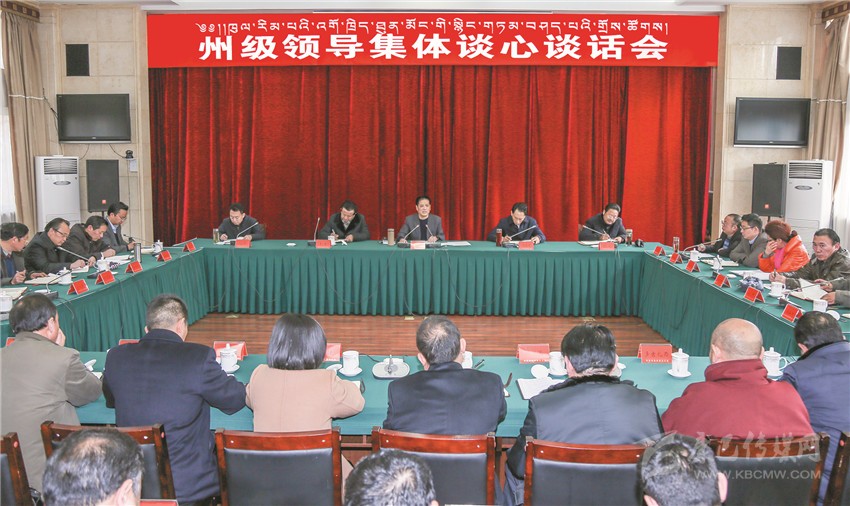 本網訊 (記者 楊杰 文/圖)1月12日上午,州委書記劉成鳴主持召開州級領導集體談心談話會,與州委、州人大常委會、州政府、州政協班子成員集體懇談交流、溝通思想。他強調,州級領導要進一步統(tǒng)一思想,拼盡全力,擰成一股繩,匯聚一股氣,打好甘孜州的“翻身仗”,團結帶領全州各族干部群眾,齊心協力完成州第十一次黨代會確定的目標任務,確保到2020年與全國、全省同步全面建成小康社會。