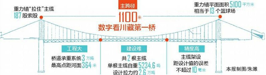 興康特大橋橫跨大渡河,為懸索橋設(shè)計(jì),在整個(gè)道橋系統(tǒng)中,全靠主纜拉住橋面、形成支撐。道橋設(shè)計(jì)承重系統(tǒng)有3萬(wàn)多噸,如何拉得住?