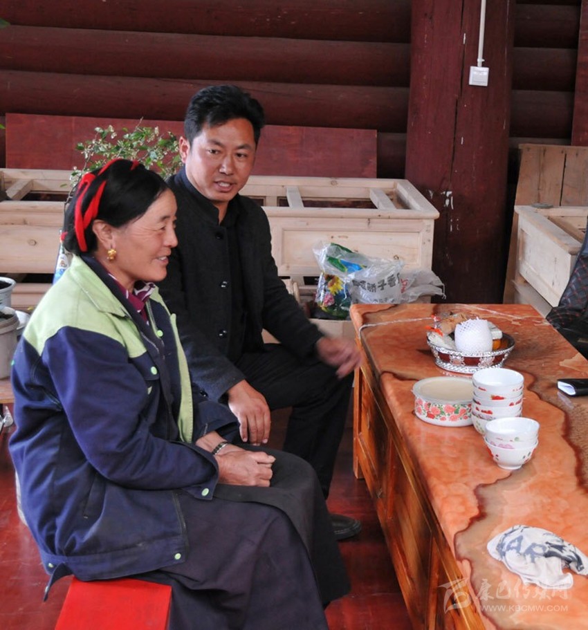 藏族支書郎吉正在介紹村里建設(shè)綠色蔬菜基地的情況。