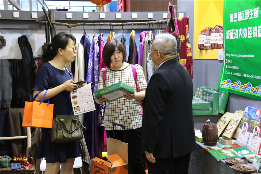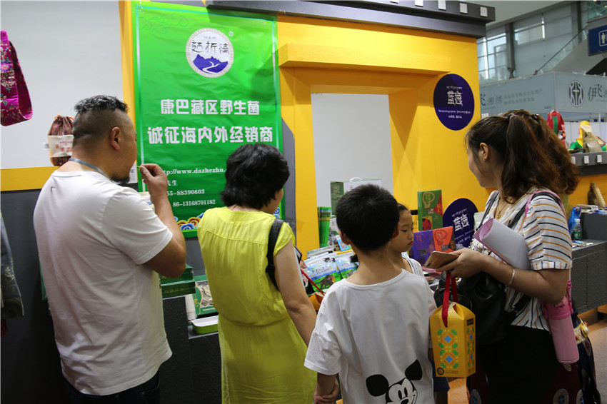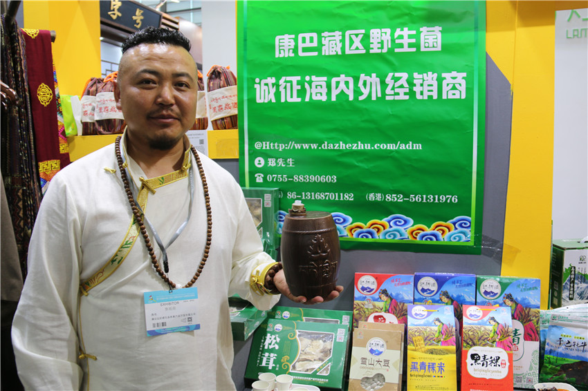 本網(wǎng)訊(記者 宋志勇 文/圖)“這是什么菌類,是野生的嗎?”“是的,是高原野生松茸,還有牦牛肉等,都是本地原生態(tài)綠色產(chǎn)品?!?月13日,參加第十四屆(深圳)文博會(huì)的康定市達(dá)折渚生態(tài)農(nóng)畜產(chǎn)品開發(fā)有限公司負(fù)責(zé)人洛布,對(duì)前來我州展館購(gòu)買產(chǎn)品的市民和游客們肯定地說,圍在展臺(tái)的人們?cè)谄穱L到可口的牦牛肉產(chǎn)品的同時(shí),還詢問包裝好的野生菌、青稞等系列產(chǎn)品。