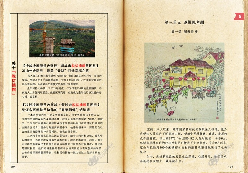 本節(jié)數(shù)學課,我們將通過了解掌握圖形拼接概念,把走入新生活群眾的笑臉拼湊完整,除了基礎(chǔ)練習,還設(shè)置了進階版練習,在圖形拼接的樂趣中,進一步感受脫貧攻堅帶來的實實在在的成效。