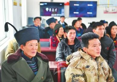 10月28日,把家里的幾頭豬安頓好后,涼山州美姑縣洛俄依甘鄉(xiāng)阿居曲村村民曲比曲千早早地趕到村委會(huì),收看當(dāng)天村上“云端夜?!钡牡谝惶眠h(yuǎn)程授課?!艾F(xiàn)在村里家家戶戶都養(yǎng)豬,收入好不好就看各家豬兒喂得肥不肥,今天是成都的專家講養(yǎng)殖,我眼睛又不太好,想坐前面點(diǎn)?!?/p>