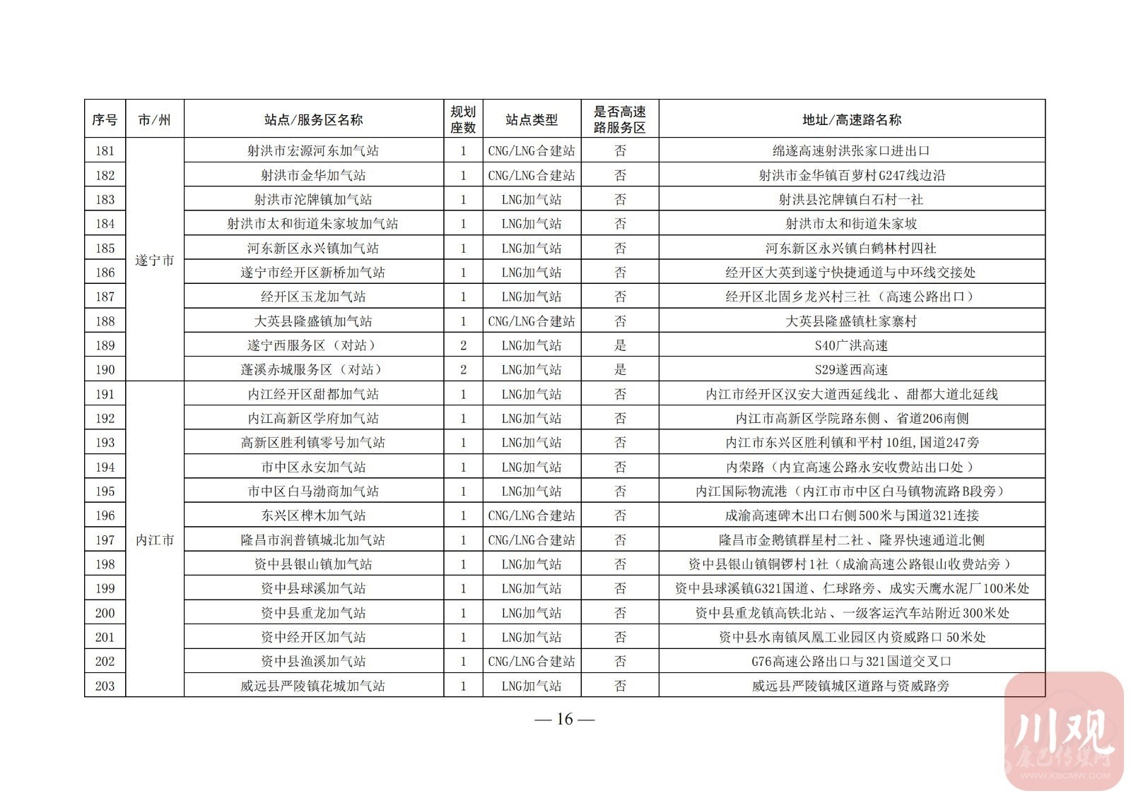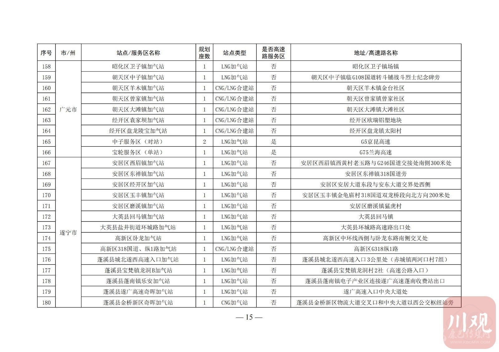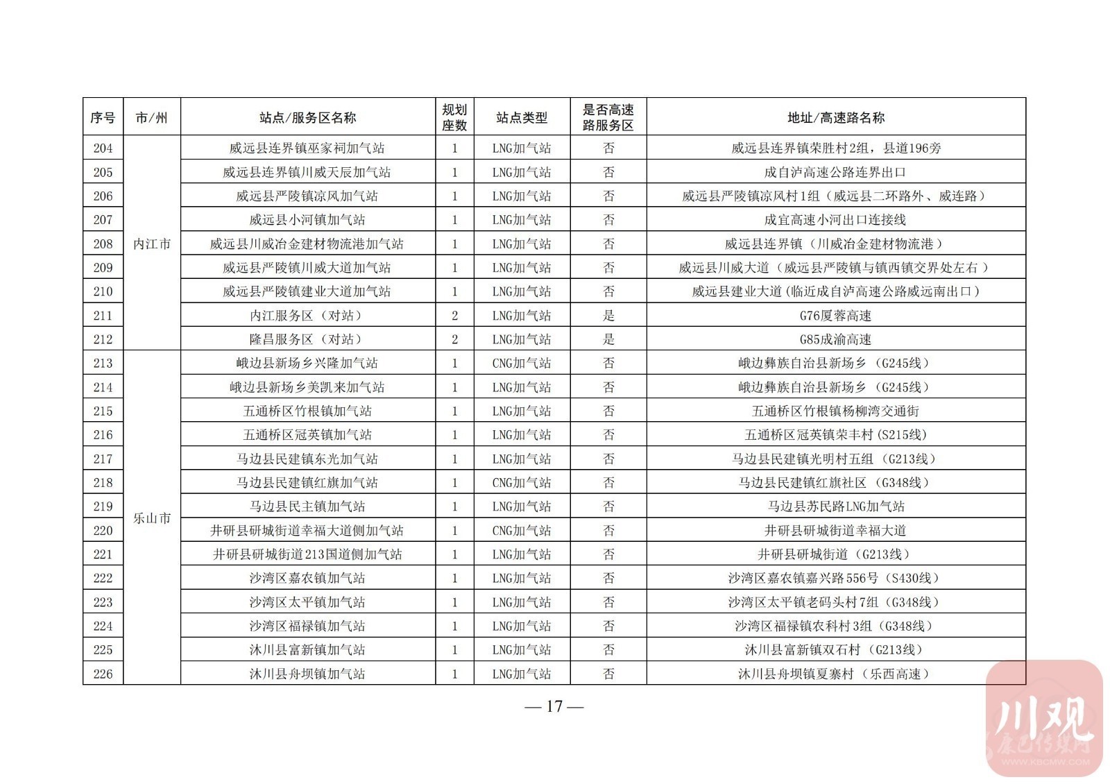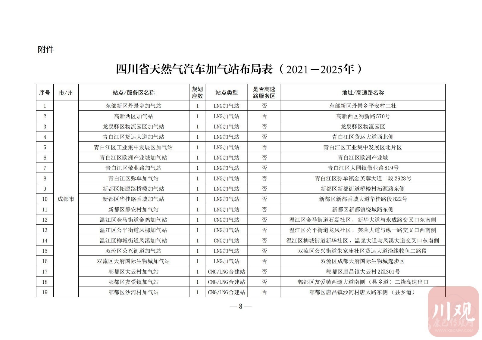附:四川省天然氣汽車加氣站布局表