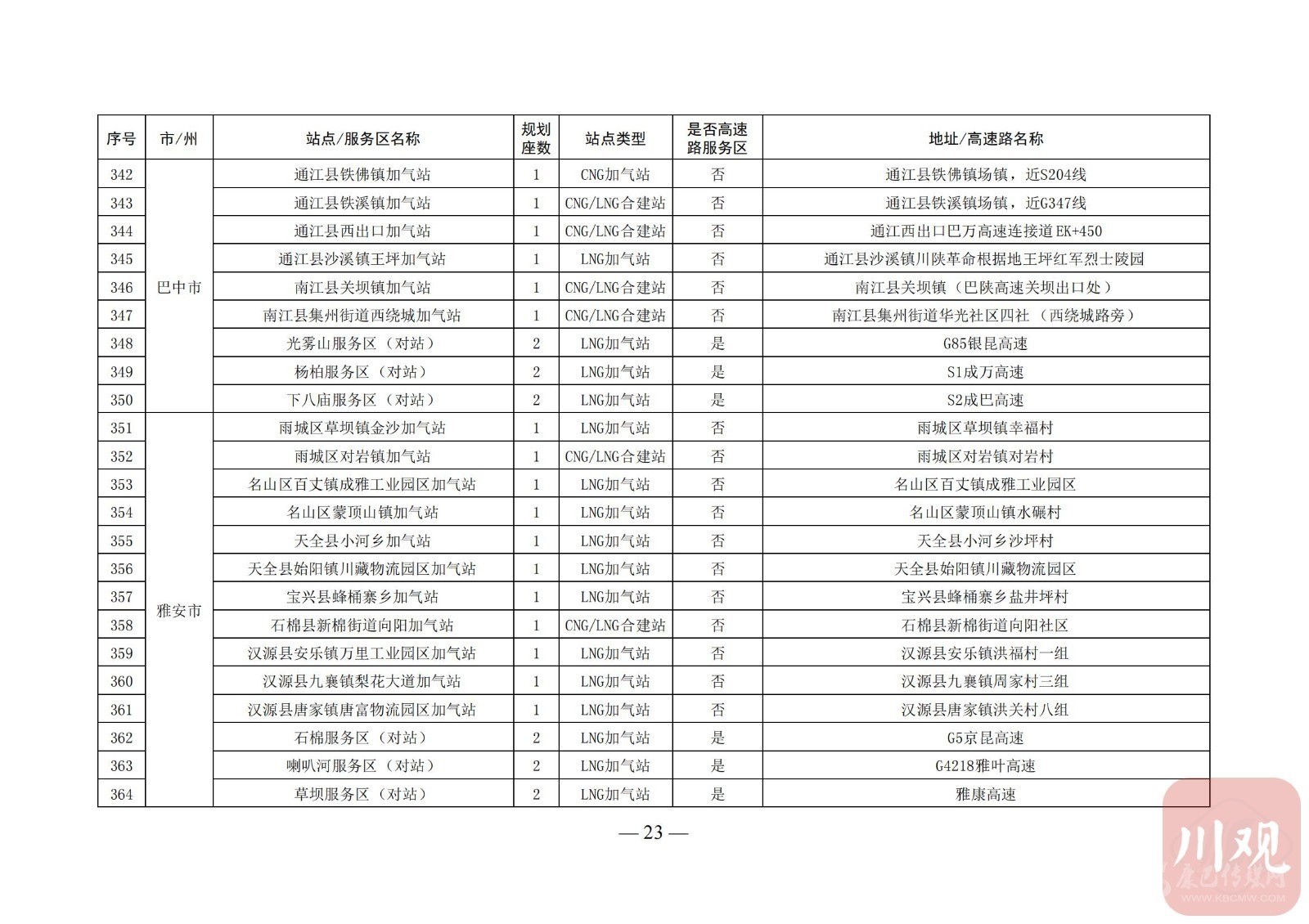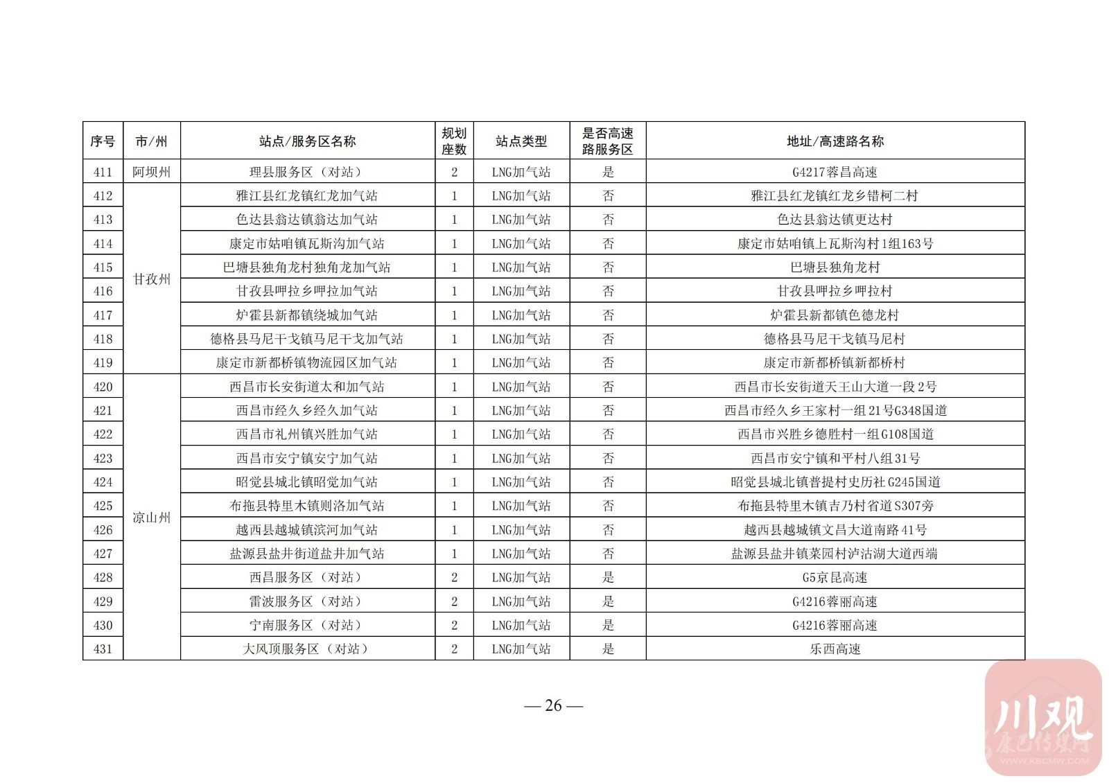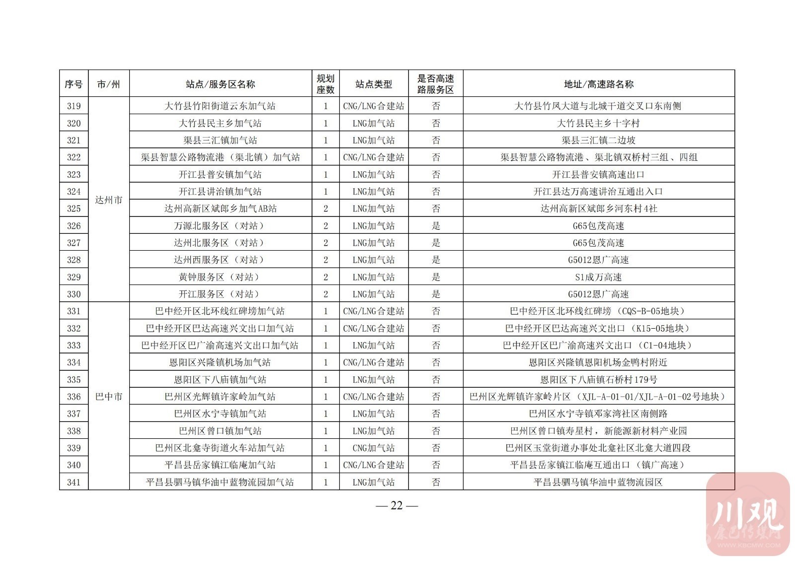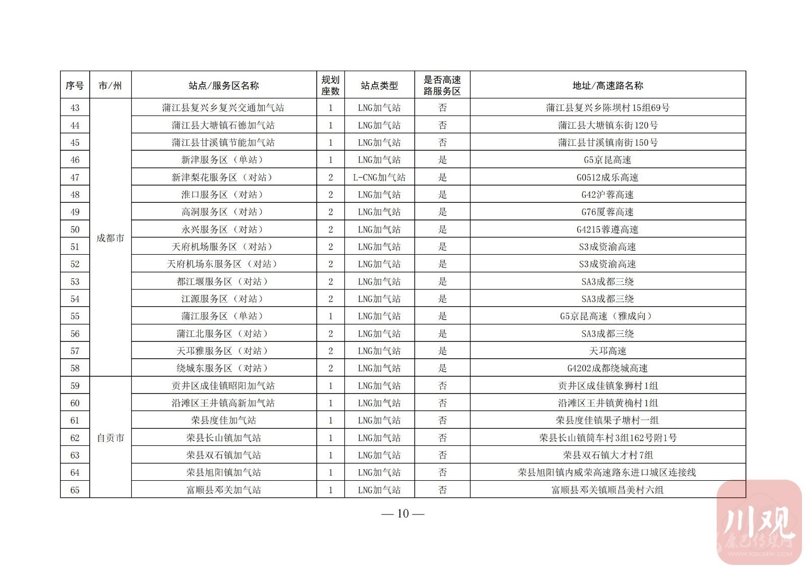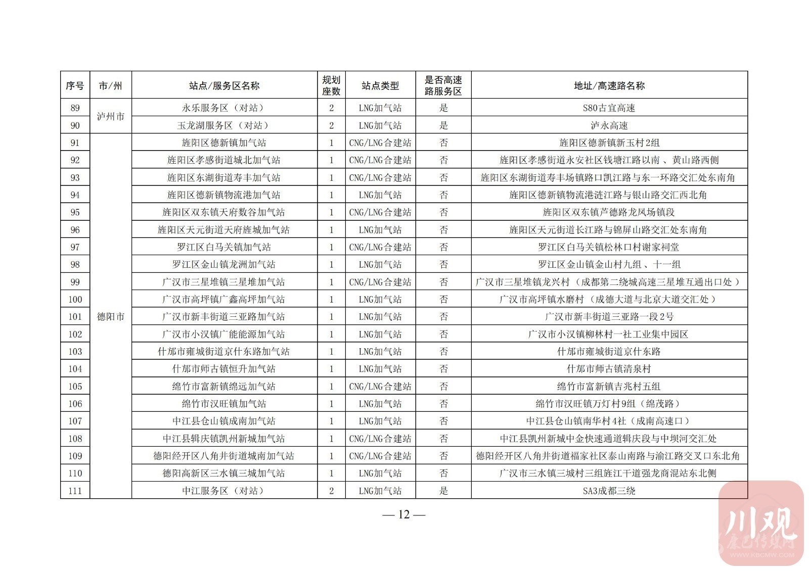 附:四川省天然氣汽車加氣站布局表
