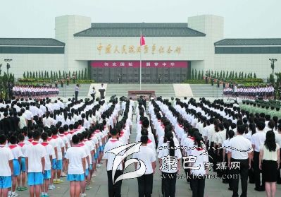 盧溝橋畔,坐落在這里的中國(guó)人民抗日戰(zhàn)爭(zhēng)紀(jì)念館雄偉莊嚴(yán)。紀(jì)念館前廣場(chǎng)上,鮮艷的五星紅旗高高飄揚(yáng)。紀(jì)念館正門上方懸掛著“勿忘國(guó)恥 圓夢(mèng)中華”的巨幅標(biāo)語。