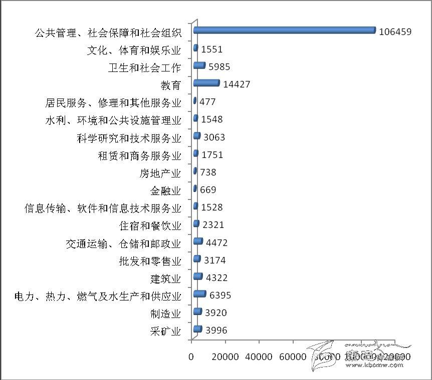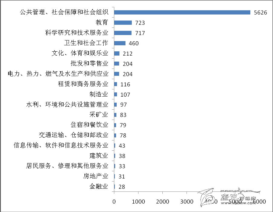 2013年末,在第二產(chǎn)業(yè)和第三產(chǎn)業(yè)法人單位中,位居前三位的行業(yè)是:公共管理、社會保障和社會組織 5626 個,占62.87 %;教育723個,占8.08 %;科學研究和技術(shù)服務業(yè)717個,占8.01 %。在有證照個體經(jīng)營戶中,位居前三位的行業(yè)是:批發(fā)和零售業(yè)8349個,占41.69 %;交通運輸、倉儲和郵政業(yè)6462個,占32.27 %;住宿和餐飲業(yè)3102個,占 15.49 %(詳見表1-2)。