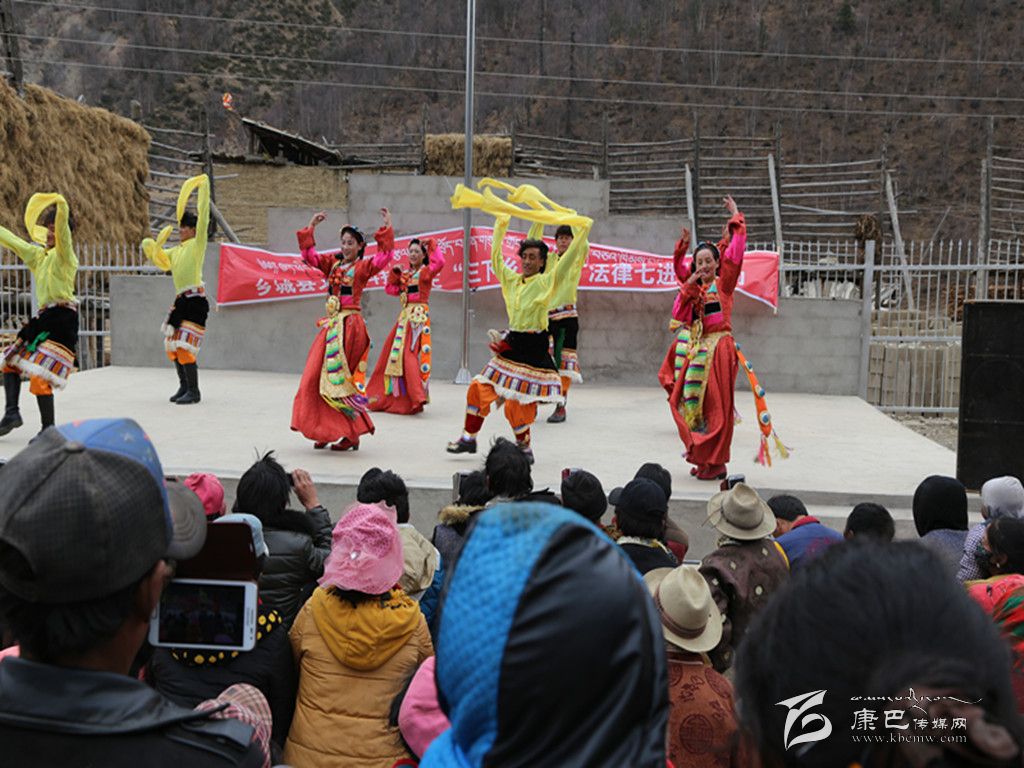 演出開始時,天空飄起了雪花,演員們表演的《再唱山歌給黨聽》、《香巴拉頌歌》、《吉祥頌》等群眾耳熟能詳?shù)母枨臀璧笢嘏巳罕姷男模②A得了如潮掌聲。