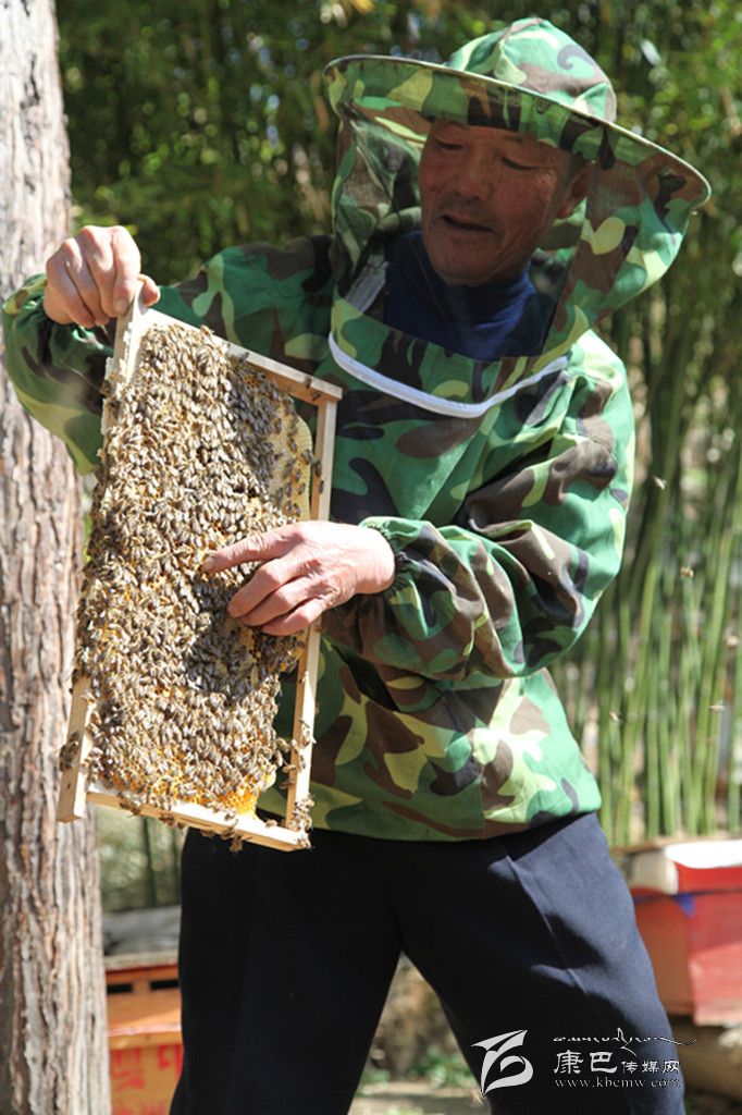 1974年,因?yàn)轲B(yǎng)蜂,高廷明成了割“尾巴”的對象,被連續(xù)批斗了好幾個(gè)晚上。但所有這些,都沒有阻擋他養(yǎng)蜂的喜好,反而激發(fā)了他發(fā)展壯大養(yǎng)蜂業(yè)的欲望。“我們這里有桃花、李花、金銀花、油菜花,山上還有成片的五倍子花,五倍子花粉成糖顏色最好,金銀花蜜則有藥用價(jià)值。養(yǎng)蜂講究‘三睛兩雨’,最好是晚上下雨,白天出太陽,這種天氣花粉最好,產(chǎn)糖高。由于人手不夠,我都采用小轉(zhuǎn)場放蜂,一般只轉(zhuǎn)場兩、三公里,走遠(yuǎn)了一個(gè)人不方便。采蜜時(shí)要把準(zhǔn)季節(jié),要不然會出現(xiàn)人與蜜蜂搶蜜的現(xiàn)象,說不定還會被蜜蜂蟄傷。”在院子后面的一片樹林里,高廷明一邊分蜂一邊對記者說。他還告訴記者,雖然自己天天與蜜蜂打交道,這些有靈性的小家伙似乎已經(jīng)習(xí)慣主人的氣味,但自己還是被蜜蜂蟄傷過。每次被蜜蜂蟄傷時(shí),家里的碘酒就派上了用場。