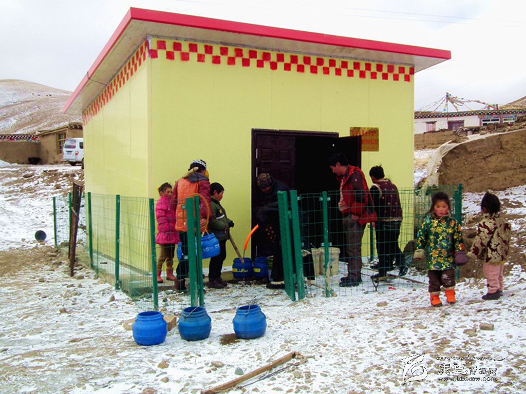 經(jīng)過(guò)反復(fù)設(shè)計(jì)檢驗(yàn),地質(zhì)工程勘察院最終采用了“泵房、水池雙重保溫、定時(shí)供水及時(shí)排水”的方案來(lái)解決以上問(wèn)題。在儲(chǔ)水箱和里外出水管上都裹上厚厚的保溫隔熱材料,非凍期24小時(shí)按需供水,冰凍期因需要及時(shí)排水來(lái)確保水箱、水管無(wú)殘留水被冰凍而采取早中晚定時(shí)供水。通過(guò)一個(gè)水文年尤其是一個(gè)寒冬的考驗(yàn),50口示范井成功地為最低零下45度的石渠縣包蟲病區(qū)的居民提供了清潔水源,解決了高原寒冬供水的難題。