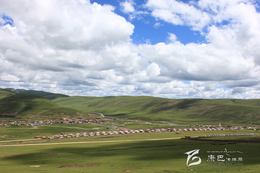 路好,車就快,比預(yù)計用的時間少。一條剛修好的通村公路立馬映入眼簾,路、樹、藏房、牦牛構(gòu)成了一幅美麗的鄉(xiāng)村風(fēng)景畫。