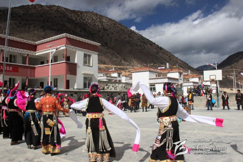 絨貢村距離茨巫鄉(xiāng)政府16公里,地處高山地帶,是得榮縣典型的高山邊遠貧困村,農(nóng)牧民居住條件艱苦,交通不便,農(nóng)作物只生一季。2010年,為改善藏區(qū)群眾生產(chǎn)生活條件,省委、省政府實施牧民定居計劃,經(jīng)過多次調(diào)研后,平均海拔2800米,地勢平坦的卡色壩被確定為得榮縣生態(tài)移民開發(fā)安置點之一。作為推進富民安康的一項重大民生工程,卡色壩移民新村建設(shè)既結(jié)合了牧民生活習慣又融入了現(xiàn)代居住理念,建筑風格統(tǒng)一的藏式房屋內(nèi)設(shè)有衛(wèi)生間、洗浴室、并配套太陽能熱水器,經(jīng)過6年的建設(shè),在今日迎來了正式喬遷入住。
