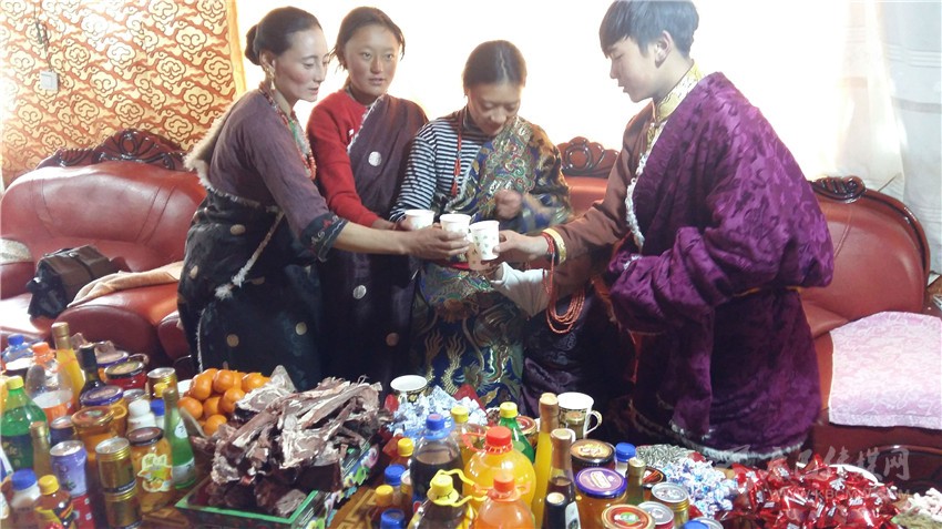 根秋卓瑪一家是俄多瑪鄉(xiāng)的村民,初一一大早,根秋卓瑪就穿上節(jié)日的盛裝。“今天我們要把年貨擺放出來,等親戚朋友祈?;貋?,我們一家就會圍坐在一起,拉著家常、吃著美食、唱著山歌,高高興興歡度藏歷新年?!备镒楷斦f。
