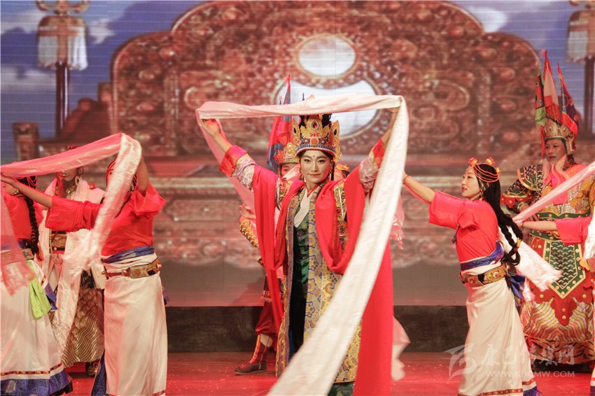 演出于晚8點(diǎn)正式開始,演員們的傾情表演,為觀眾送上了一場(chǎng)格薩爾文化的藝術(shù)盛宴。臺(tái)上動(dòng)聽的歌聲、悠揚(yáng)的旋律、精彩豐富的劇情吸引著觀眾的目光。臺(tái)下觀眾熱情高漲,掌聲不斷。