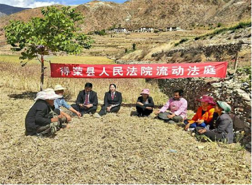 本網(wǎng)訊(縣法院辦 文/圖)近日,得榮縣法院“流動法庭”深入該縣日雨片區(qū)開展矛盾糾紛排查和法制宣傳活動。