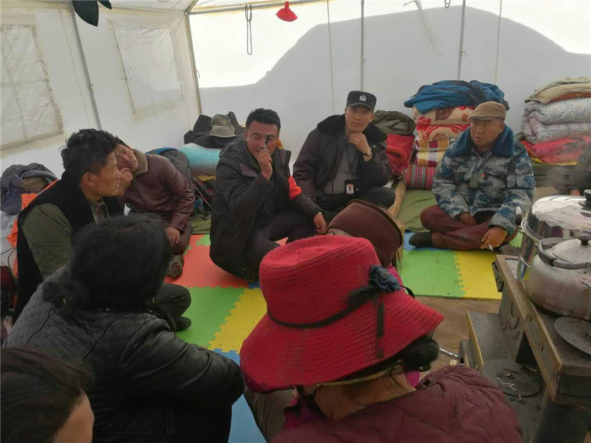 “臨時(shí)黨支部就在山上,你們有什么困難,需要解決的及時(shí)問(wèn)題都可以找支部、找黨員。要進(jìn)一步領(lǐng)會(huì)《理塘縣蟲(chóng)草采集管理處罰規(guī)定》,不做與規(guī)定相違背的事,和諧相處,共同建設(shè)和諧穩(wěn)定的蟲(chóng)草采集區(qū)。黨和國(guó)家為我們創(chuàng)造了和諧穩(wěn)定的社會(huì)環(huán)境,作為新時(shí)代的農(nóng)民,要樹(shù)立感恩意識(shí),通過(guò)保護(hù)生態(tài)環(huán)境、強(qiáng)化環(huán)境衛(wèi)生整治等行動(dòng),彰顯新時(shí)代農(nóng)民精神?!蹦岈敐扇式Y(jié)合當(dāng)前工作繼續(xù)說(shuō)到。