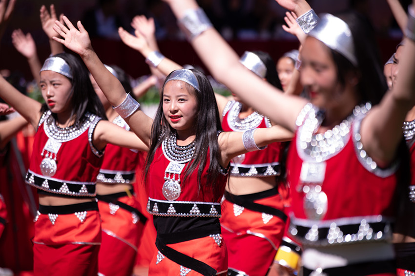 本網(wǎng)訊 5月28日,雅江縣第五屆中小學生校園文化藝術節(jié)展演活動在呷拉鎮(zhèn)片區(qū)寄宿制小學開演。表演分童心向黨跟黨走、陽光體育伴成長、民族團結一家親三個篇章,共有18個代表隊、2000余人參演。師生們隨著動感的節(jié)拍歡快起舞,用精彩的表演生動展現(xiàn)了昂揚的革命精神、繽紛的青春夢想,贏得一波又一波熱烈的掌聲。圖為展演活動現(xiàn)場。 雅江縣融媒體中心 攝影報道